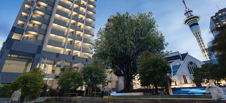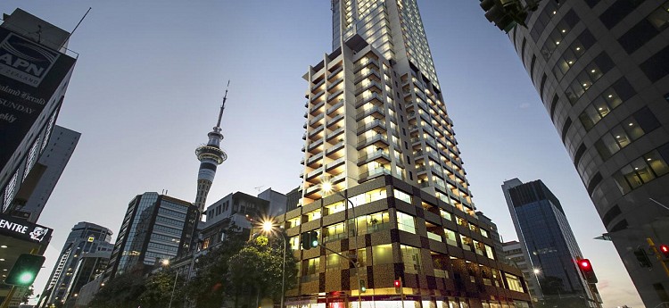 Park Residences is a 30 storeyed central city apartment building located in Auckland CBD. It consists of one parking basement, two floors of retail and 28 levels of apartments - 250 in total. The building is one of few in Auckland to be clad in glass and aluminum curtain wall.
